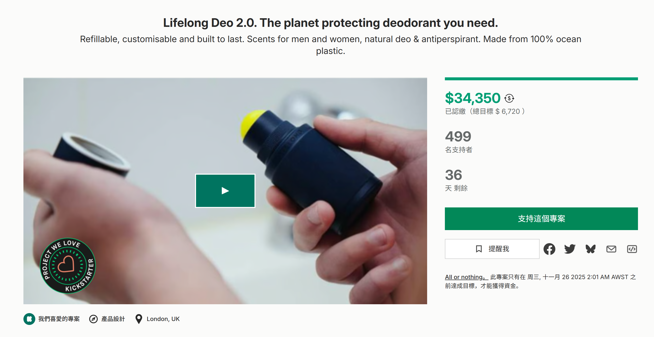 可重复装填、可定制且经久耐用。男女皆宜的香味,天然除臭止汗。由100%海洋塑料制成。