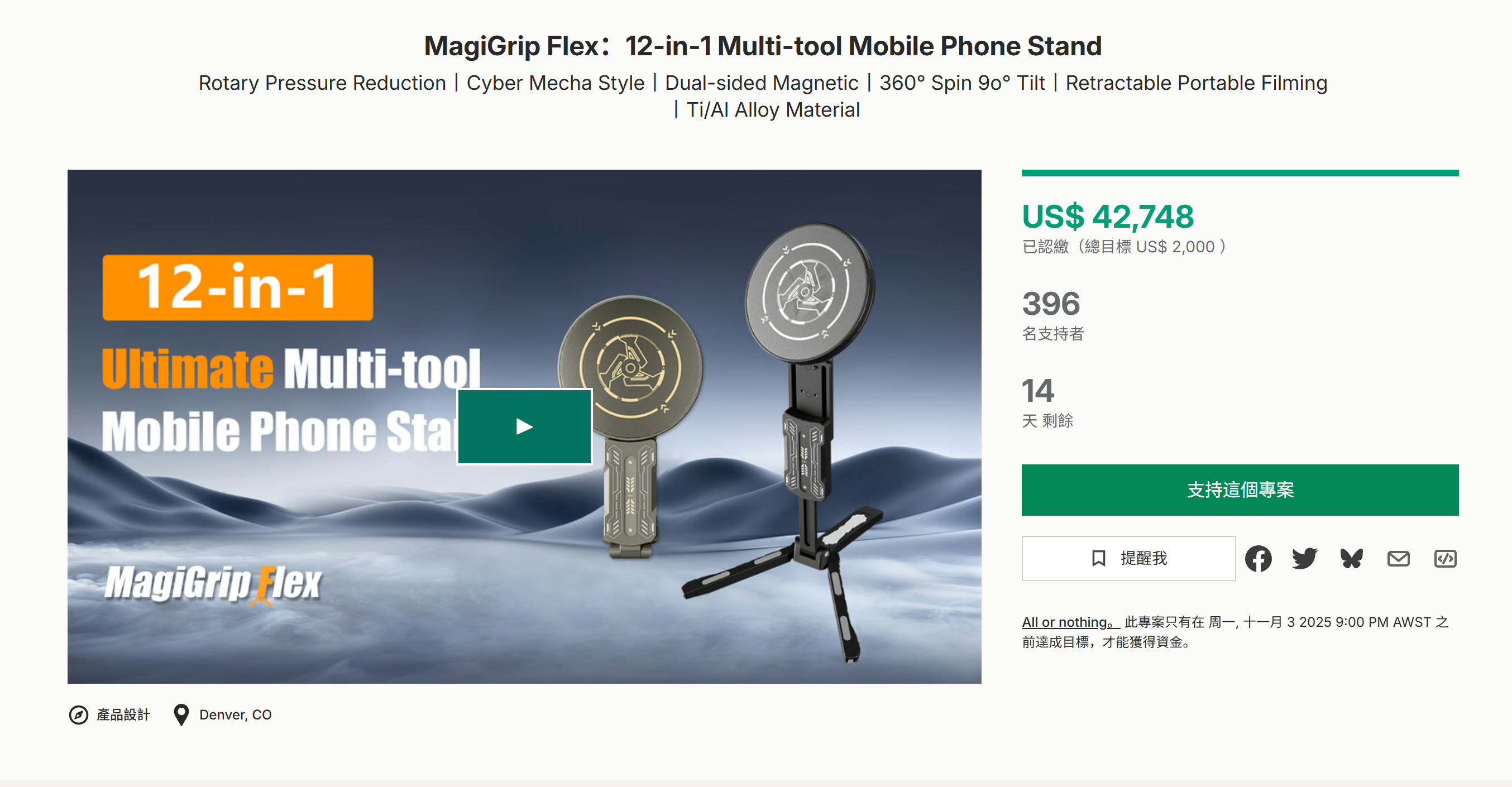 旋转压力降低丨网络机械风格丨双面磁性丨360°旋转90°倾斜丨可伸缩便携式拍摄丨钛/铝合金材料
