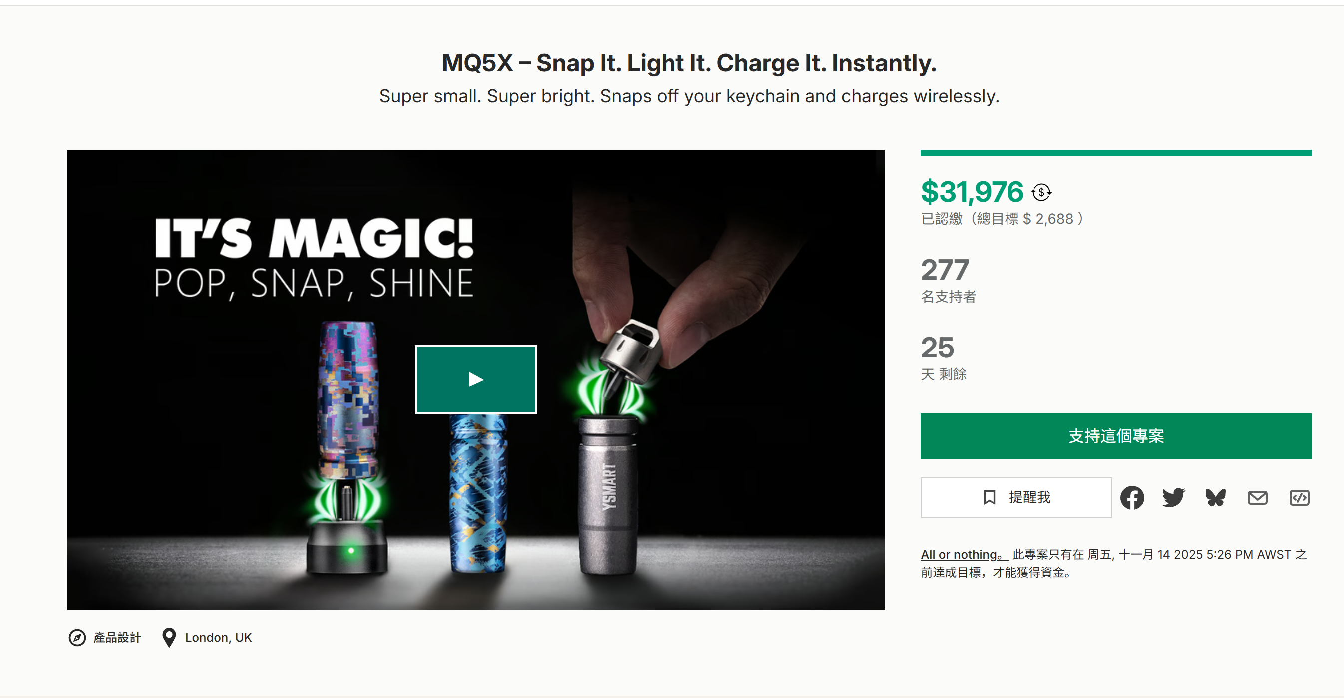 Super small. Super bright. Snaps off your keychain and charges wirelessly. 超小。超亮。扣下钥匙链,无线充电。 海外众筹运营就找邓立斌 灵活的合作模式:采销、代运营、顾问陪跑 对优质的项目我们提供投资 电话:15362888518