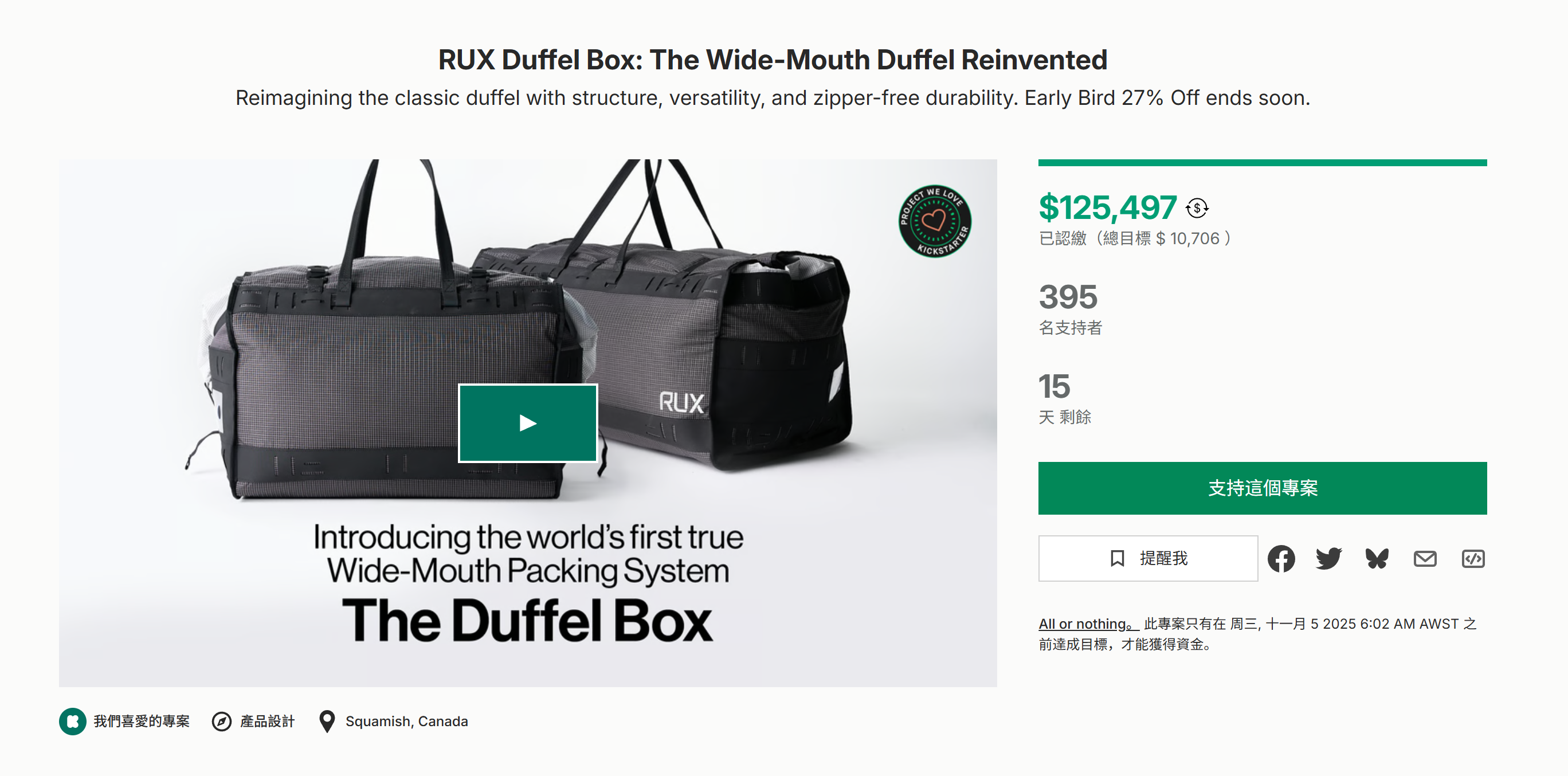 Reimagining the classic duffel with structure, versatility, and zipper-free durability. Early Bird 27% Off ends soon. 以结构、多功能性和无拉链耐用性重新构想经典行李袋。早鸟27%折扣即将结束。 海外众筹运营就找邓立斌 灵活的合作模式:采销、代运营、顾问陪跑 对优质的项目我们提供投资 电话:15362888518