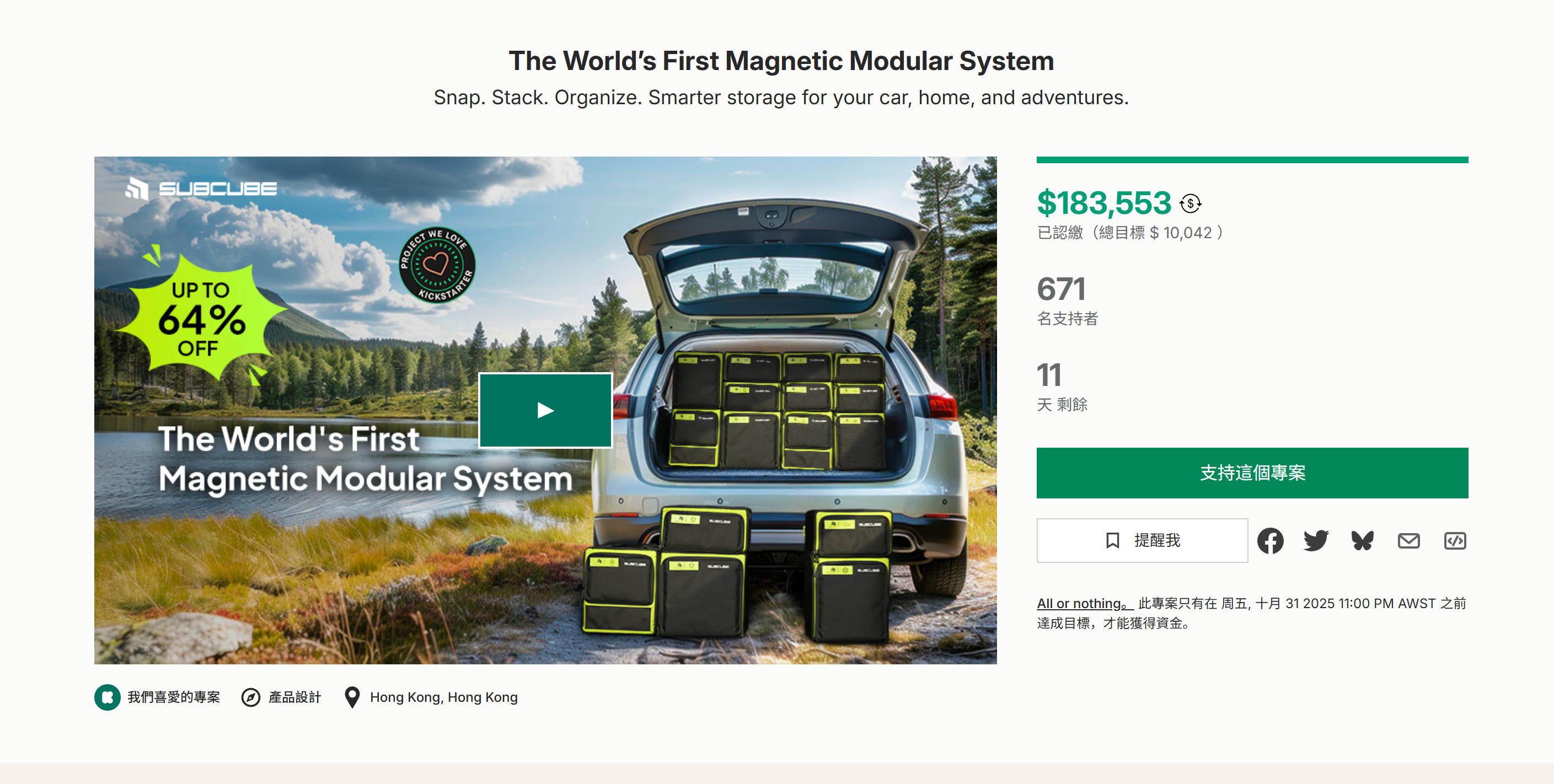 Snap. Stack. Organize. Smarter storage for your car, home, and adventures. 快。堆栈。组织。为您的汽车、家庭和冒险提供更智能的存储空间 海外众筹运营就找邓立斌 灵活的合作模式:采销、代运营、顾问陪跑 对优质的项目我们提供投资 电话:15362888518