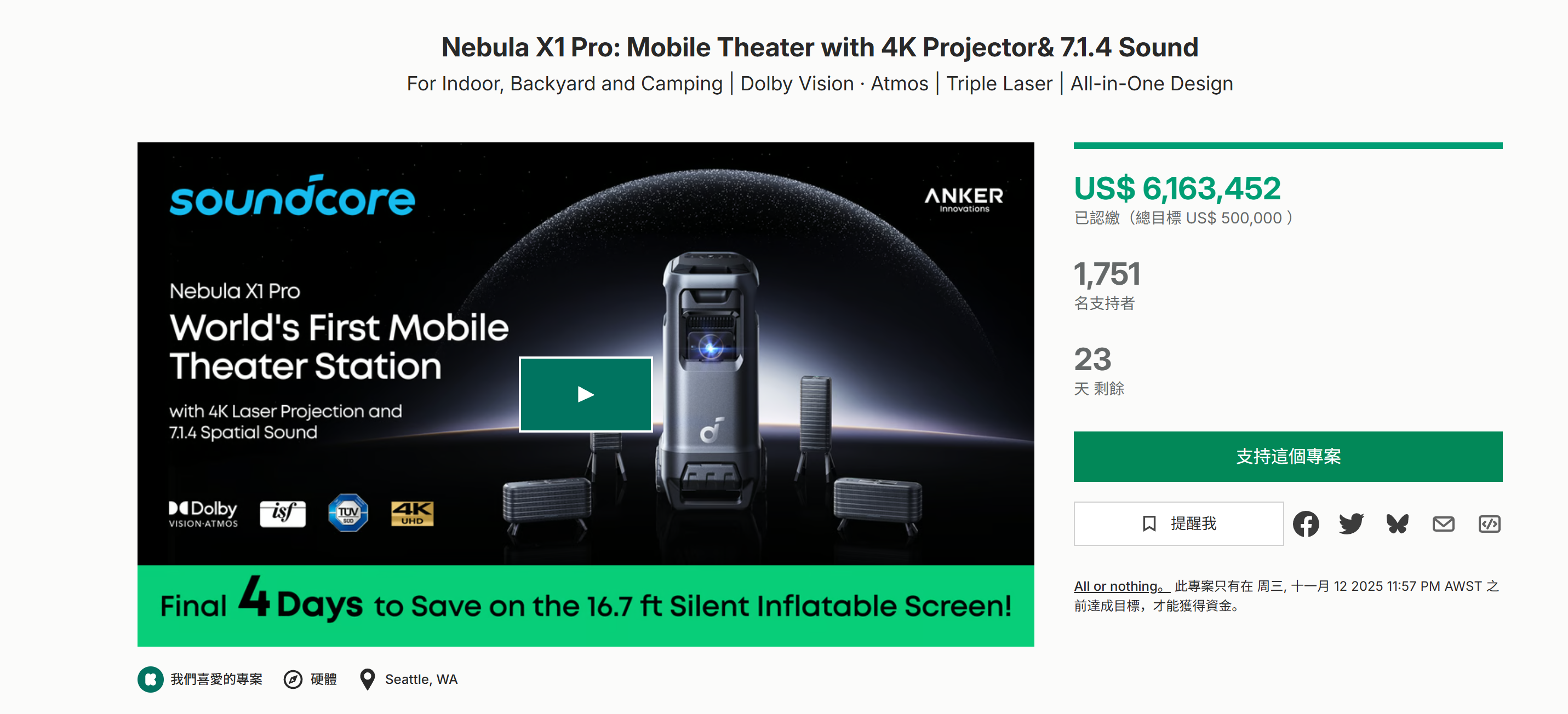 For Indoor, Backyard and Camping | Dolby Vision · Atmos | Triple Laser | All-in-One Design 室内、后院和露营|杜比视界·全景声|三重激光|一体化设计 海外众筹运营就找邓立斌 灵活的合作模式:采销、代运营、顾问陪跑 对优质的项目我们提供投资 电话:15362888518