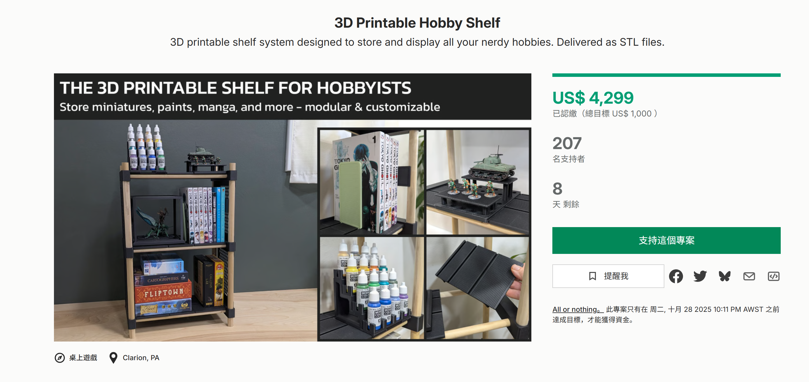 3D printable shelf system designed to store and display all your nerdy hobbies. Delivered as STL files. 3D打印货架系统,旨在存储和展示您所有的书呆子爱好。以STL文件形式交付。 海外众筹运营就找邓立斌 灵活的合作模式:采销、代运营、顾问陪跑 对优质的项目我们提供投资 电话:15362888518