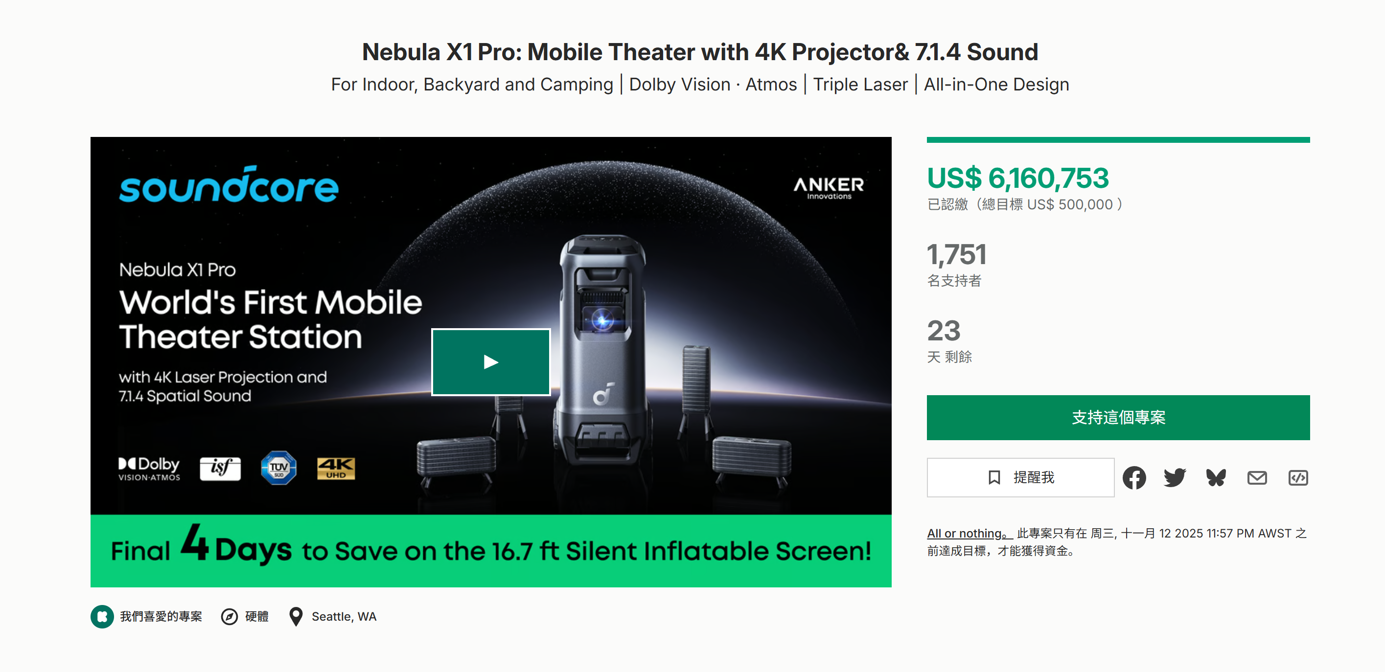 For Indoor, Backyard and Camping | Dolby Vision · Atmos | Triple Laser | All-in-One Design 室内、后院和露营|杜比视界·全景声|三重激光|一体化设计 海外众筹运营就找邓立斌 灵活的合作模式:采销、代运营、顾问陪跑 对优质的项目我们提供投资 电话:15362888518