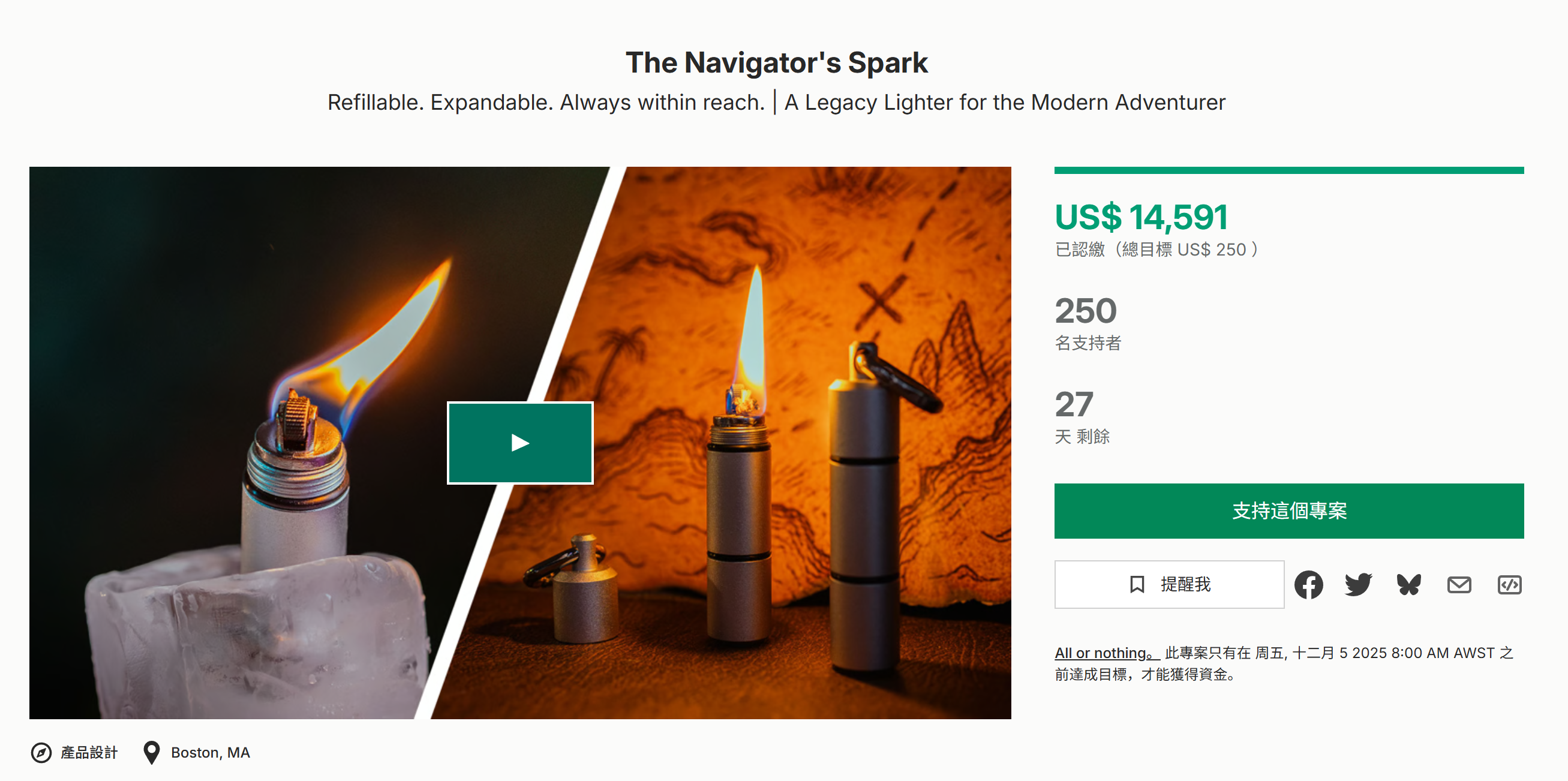 Refillable. Expandable. Always within reach. | A Legacy Lighter for the Modern Adventurer 可重新填充。可扩展。总是触手可及。|现代冒险家的传统打火机 海外众筹运营就找邓立斌 灵活的合作模式:采销、代运营、顾问陪跑 对优质的项目我们提供投资 电话:15362888518