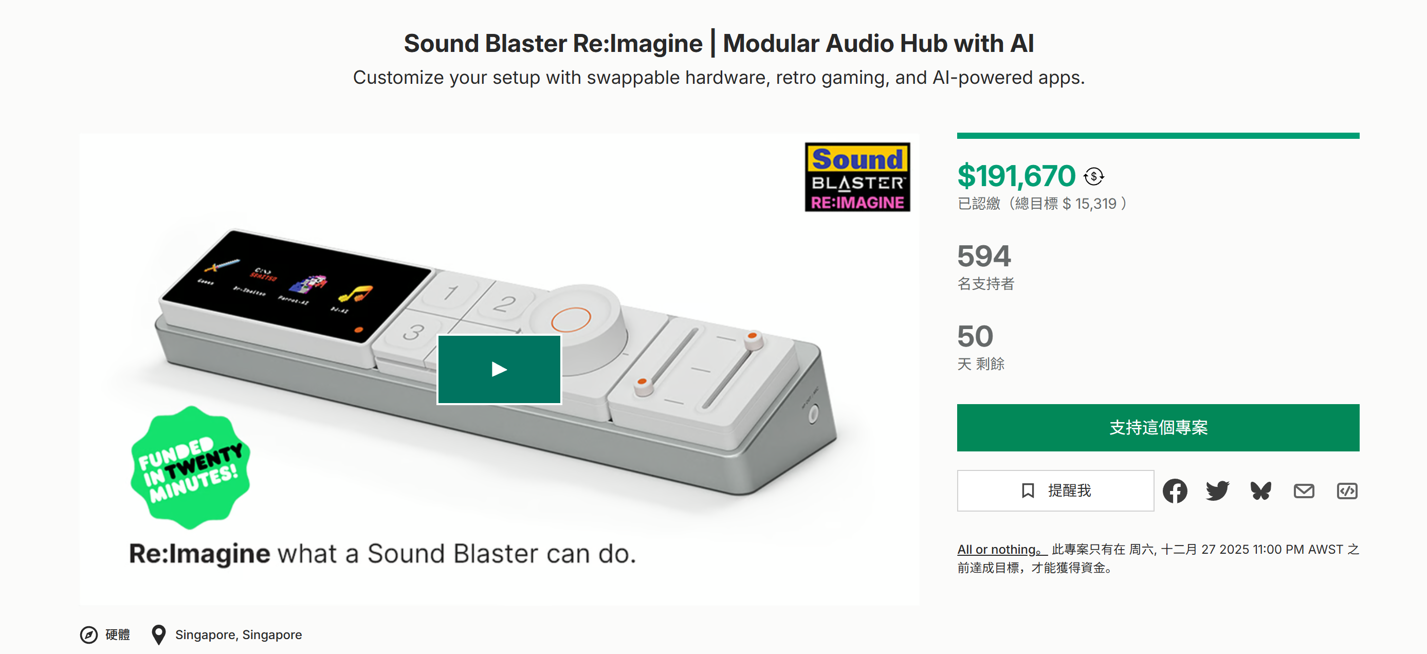 首页•项目分享•海外众筹-Sound Blaster Re:Imagine |带AI的模块化音频中心
