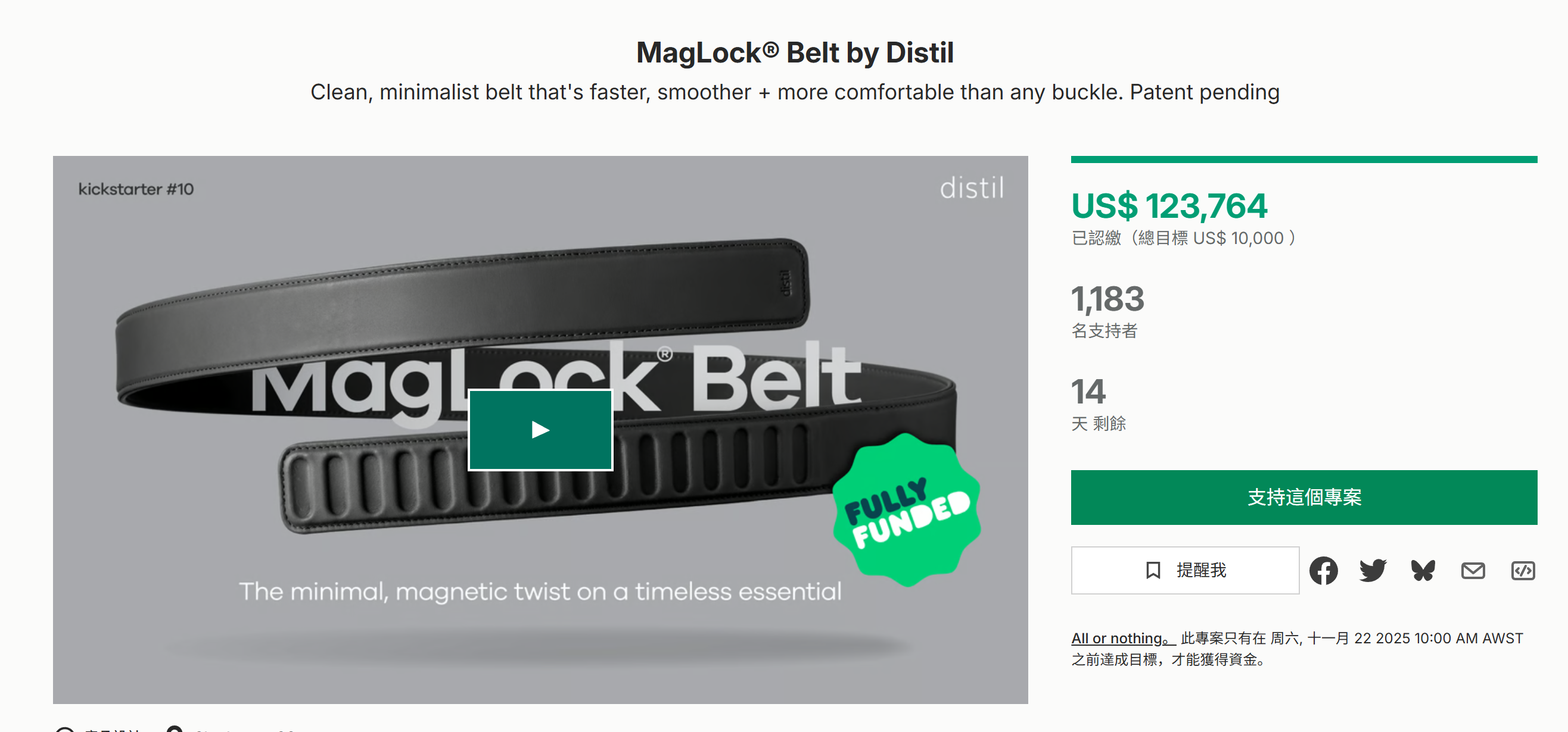 Clean, minimalist belt that’s faster, smoother + more comfortable than any buckle. Patent pending 干净、简约的皮带,比任何皮带扣都更快、更光滑、更舒适。正在申请专利 海外众筹运营就找邓立斌 灵活的合作模式:采销、代运营、顾问陪跑 对优质的项目我们提供投资 电话:15362888518
