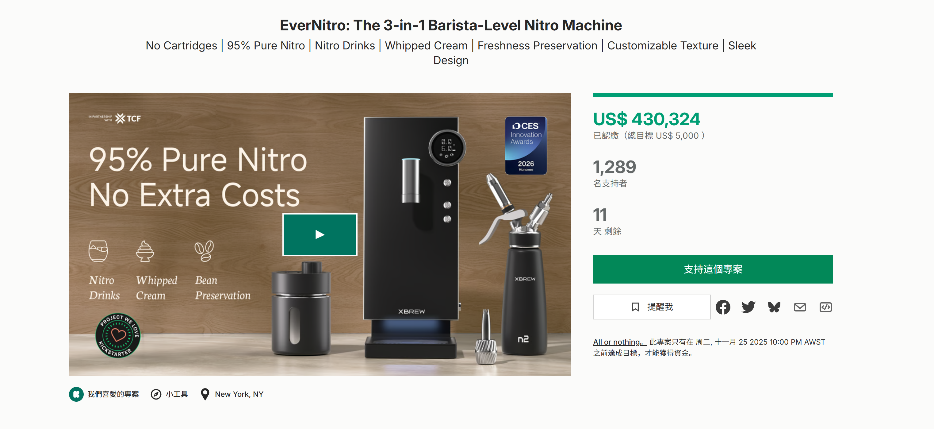海外众筹-EverNitro:三合一咖啡师级Nitro机器
