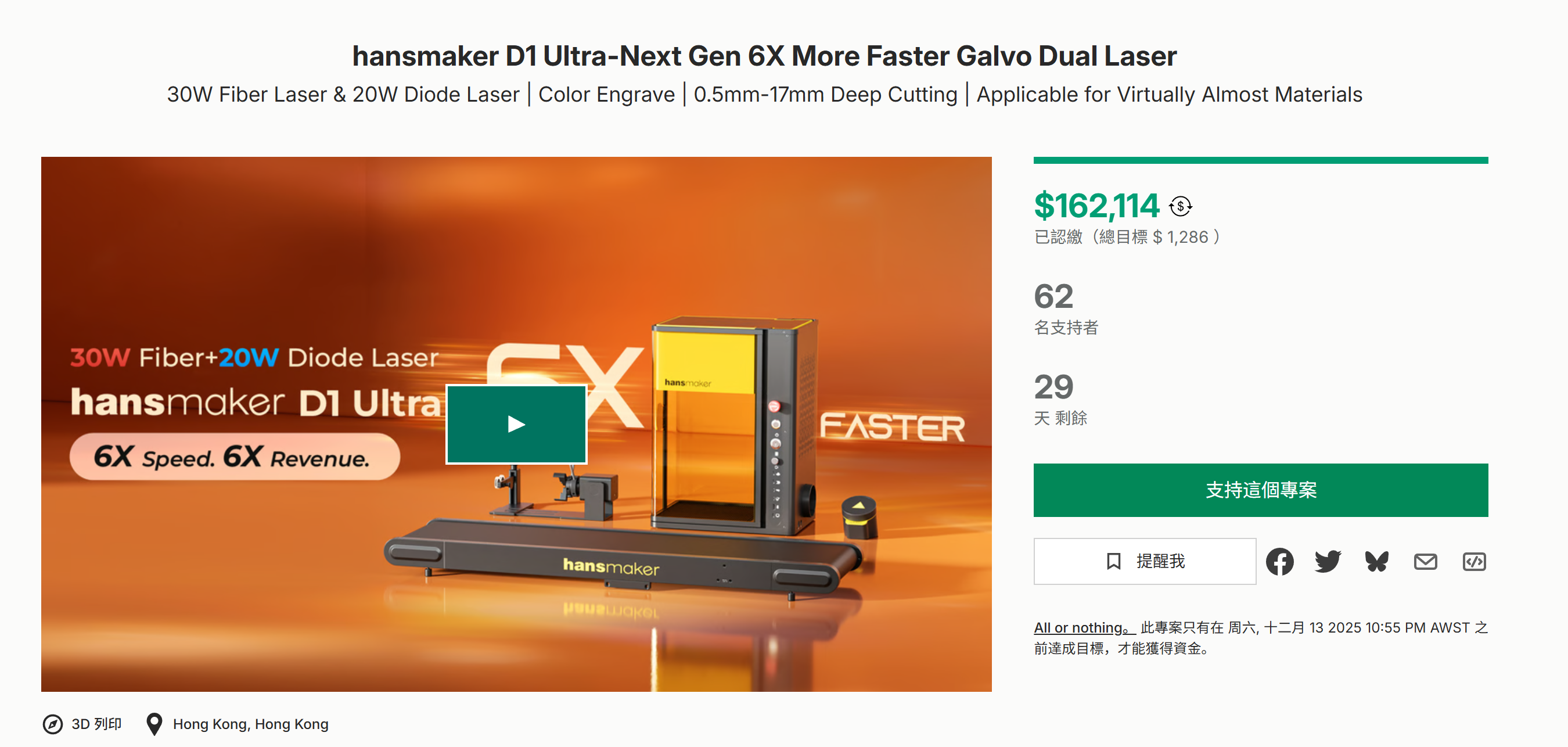 30W光纤激光器和20W二极管激光器|彩色雕刻| 0.海外众筹运营就找邓立斌