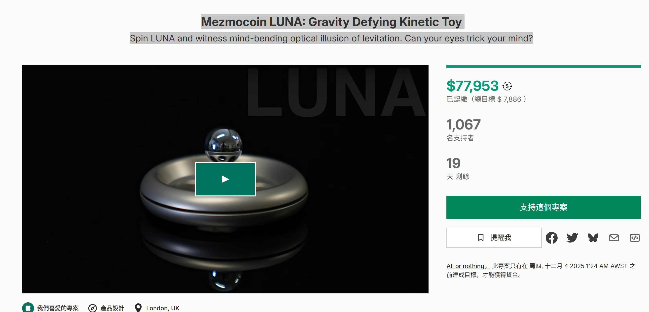 海外众筹-Mezmocoin LUNA:克服重力的动力玩具