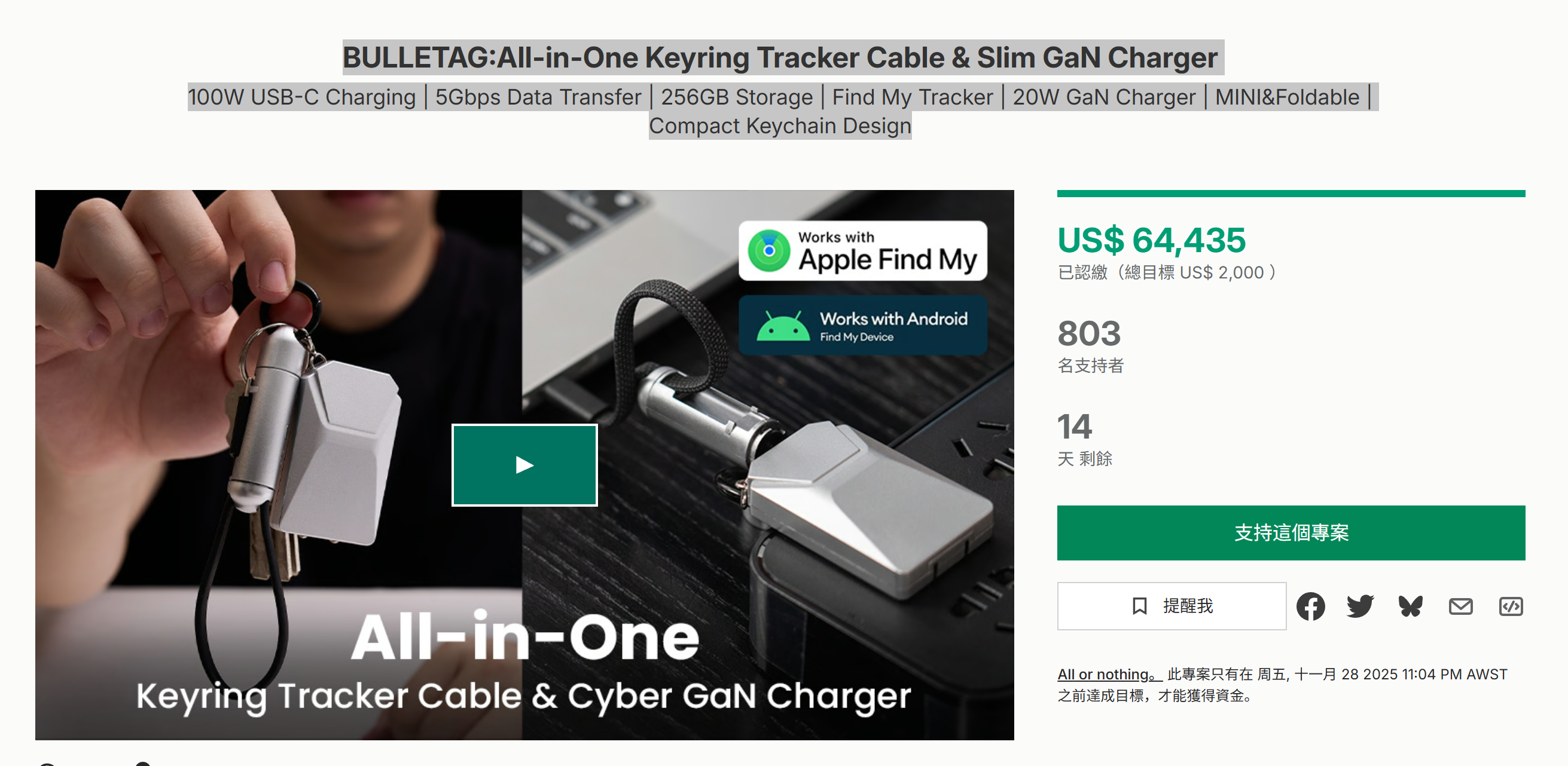 海外众筹-公告:多功能钥匙扣追踪器电缆和超薄GaN充电器