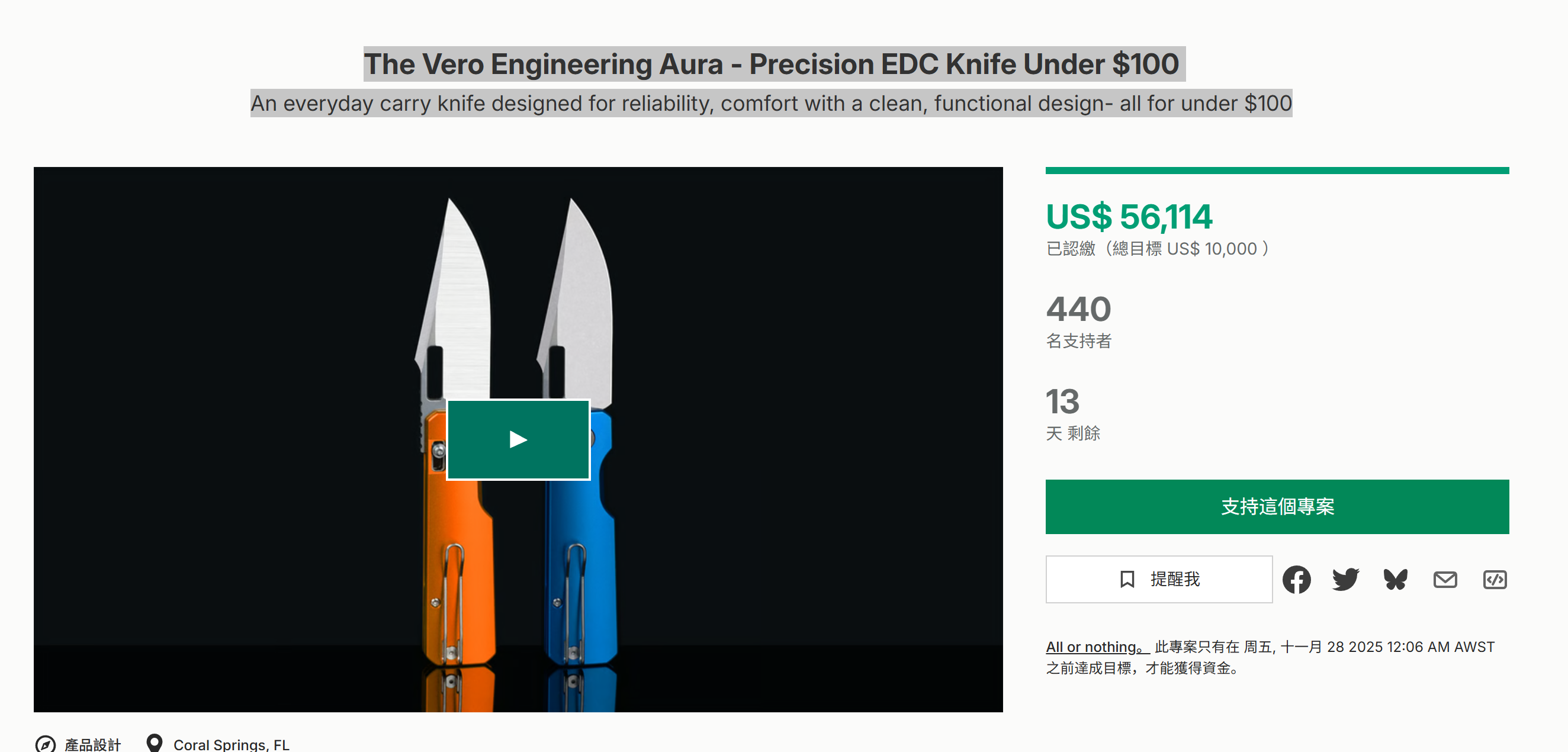 An everyday carry knife designed for reliability, comfort with a clean, functional design- all for under $100 一款日常携带刀,设计可靠、舒适,设计简洁实用,价格不到100美元 海外众筹运营就找邓立斌 灵活的合作模式:采销、代运营、顾问陪跑 对优质的项目我们提供投资 电话:15362888518