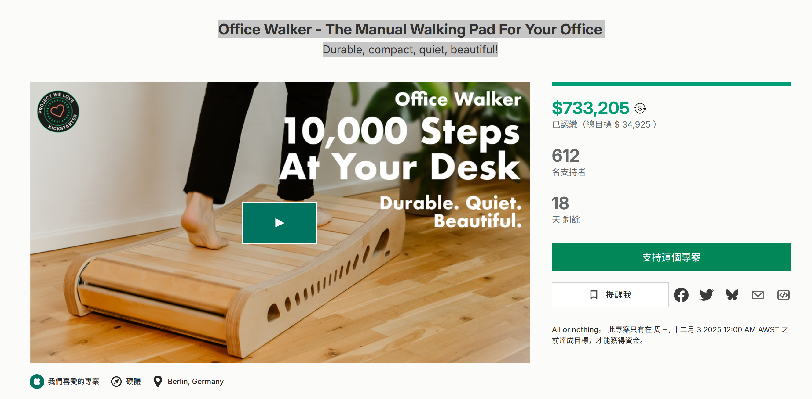 首页•项目分享•海外众筹-Office Walker-您办公室的手动步行垫