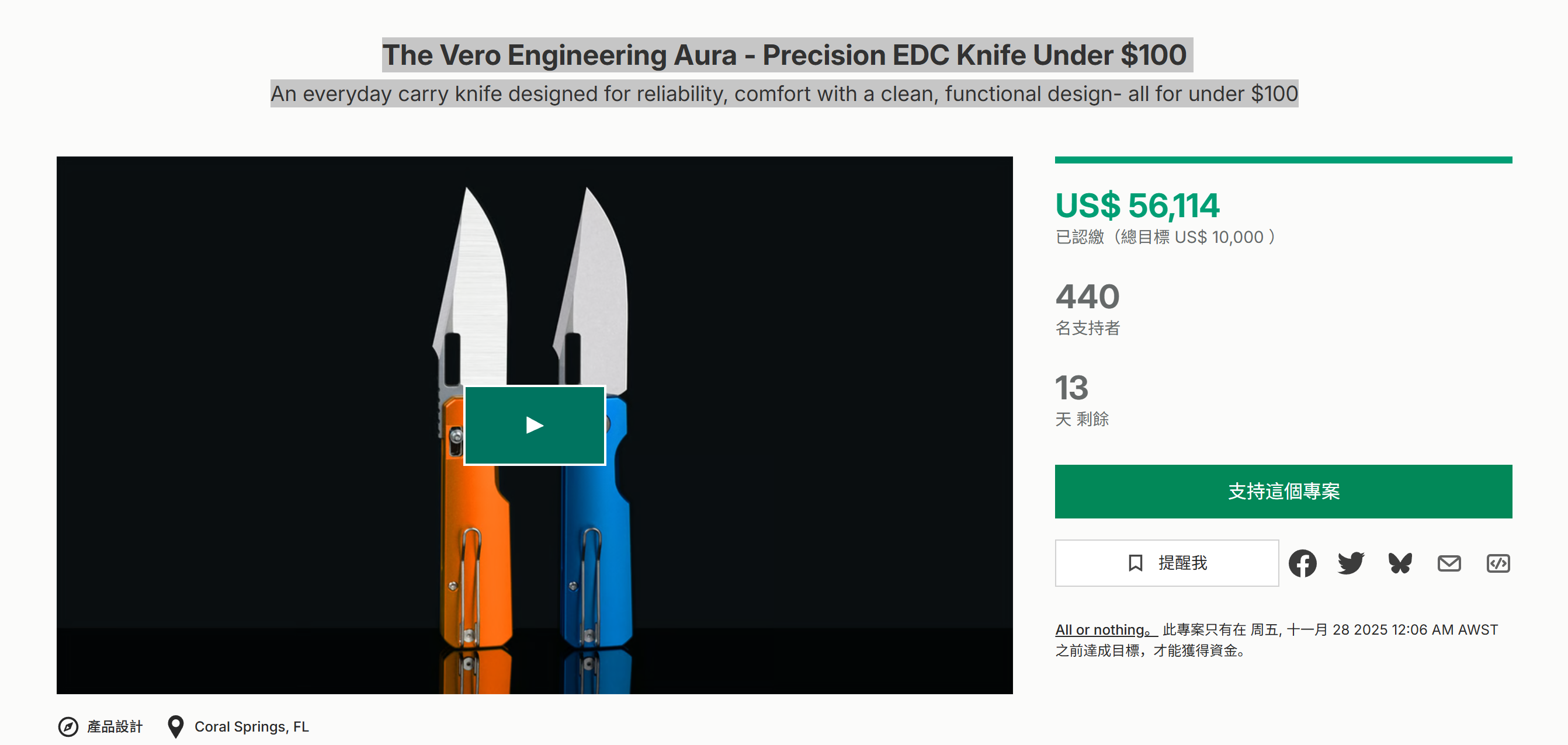 An everyday carry knife designed for reliability, comfort with a clean, functional design- all for under $100 一款日常携带刀,设计可靠、舒适,设计简洁实用,价格不到100美元 海外众筹运营就找邓立斌 灵活的合作模式:采销、代运营、顾问陪跑 对优质的项目我们提供投资 电话:15362888518