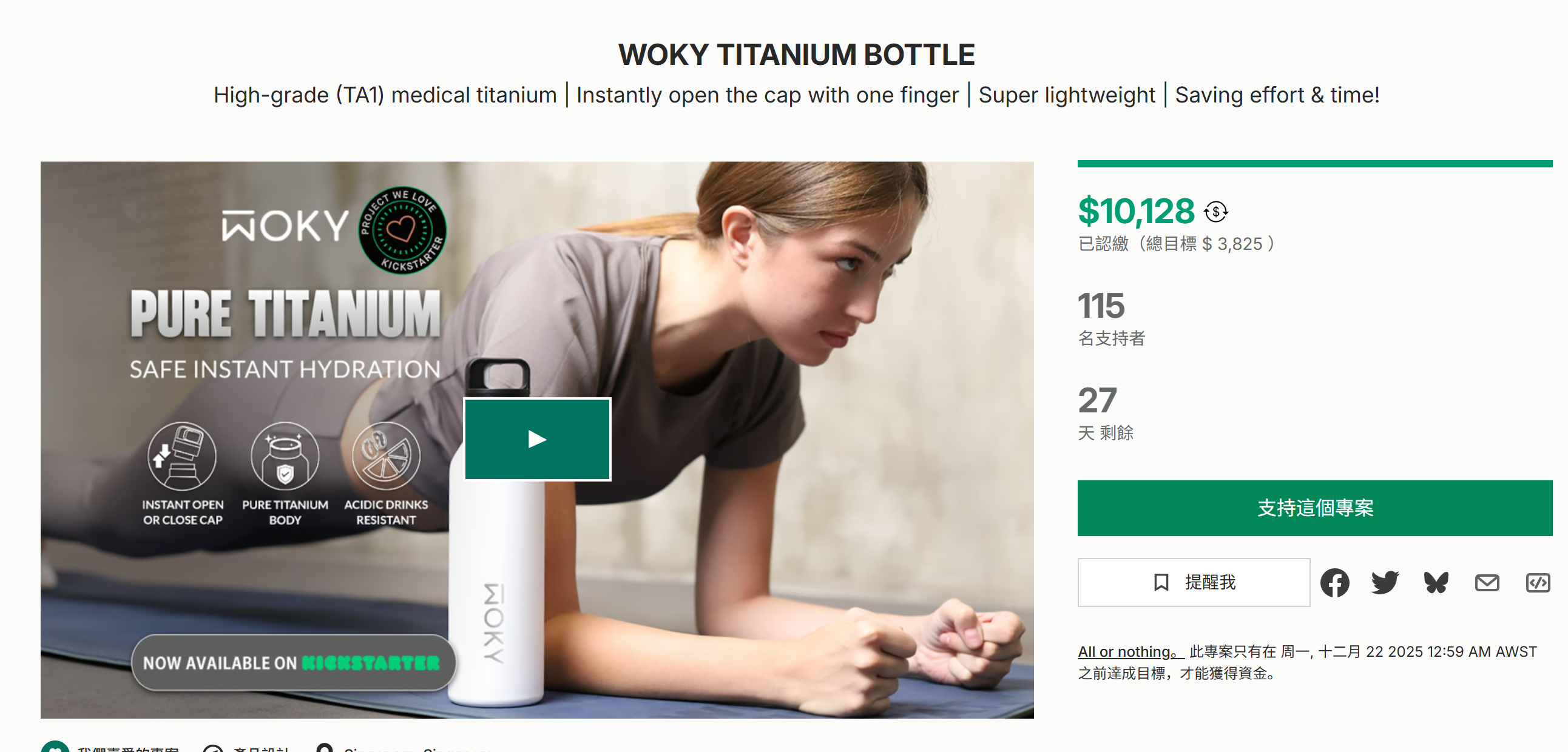 High-grade (TA1) medical titanium | Instantly open the cap with one finger | Super lightweight | Saving effort & time! 高级(TA1)医用钛|用一根手指即可立即打开盖子|超轻|节省精力和时间! 海外众筹运营就找邓立斌 灵活的合作模式:采销、代运营、顾问陪跑 对优质的项目我们提供投资 电话:15362888518