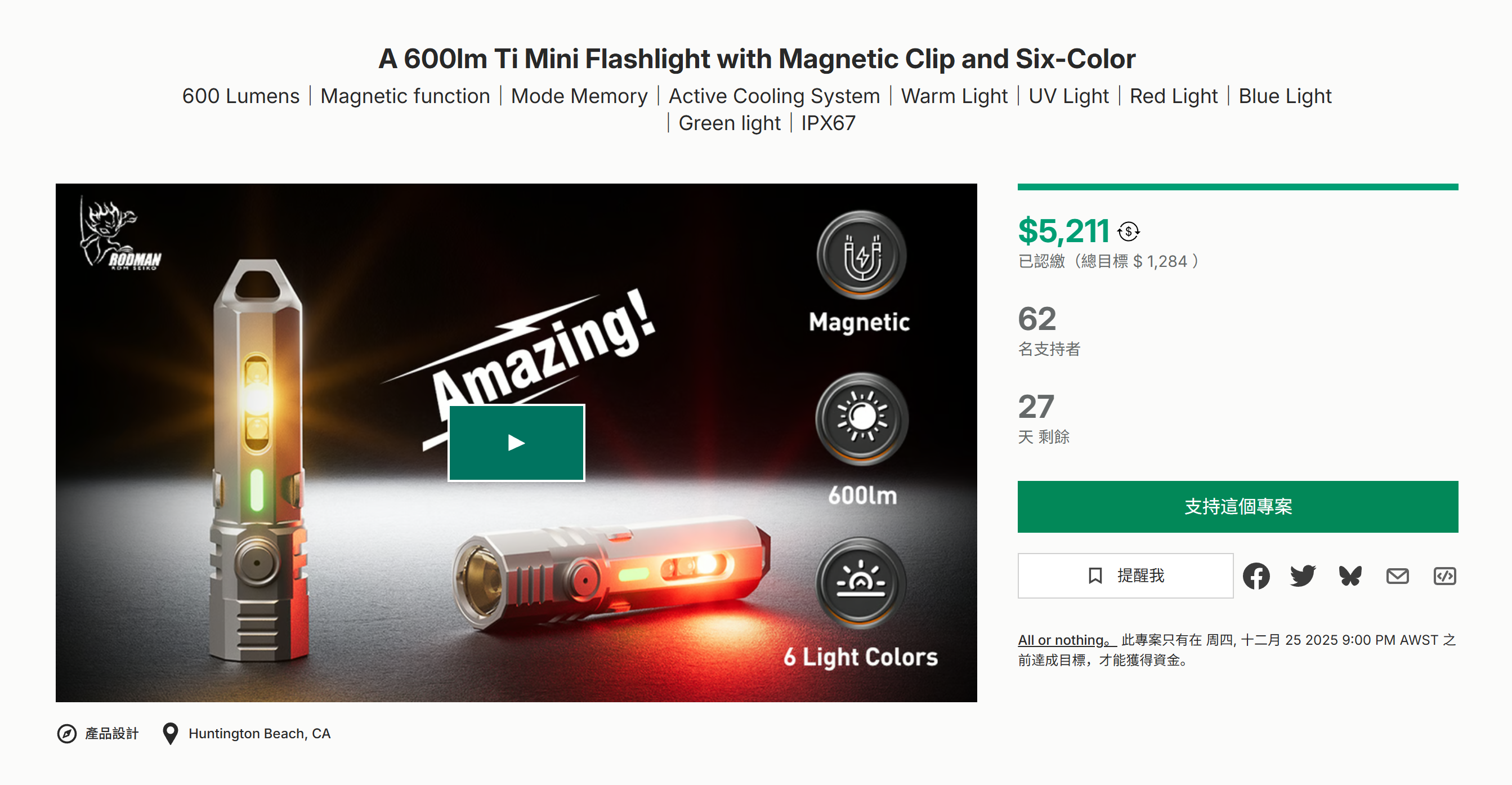 600 Lumens|Magnetic function|Mode Memory|Active Cooling System|Warm Light|UV Light|Red Light|Blue Light|Green light|IPX67 600流明|磁性功能|模式记忆|主动冷却系统|暖光|紫外线|红光|蓝光|绿光|IPX67 海外众筹运营就找邓立斌 灵活的合作模式:采销、代运营、顾问陪跑 对优质的项目我们提供投资 电话:15362888518